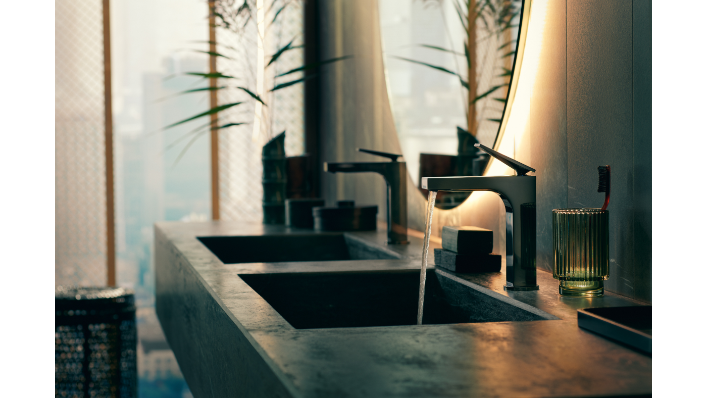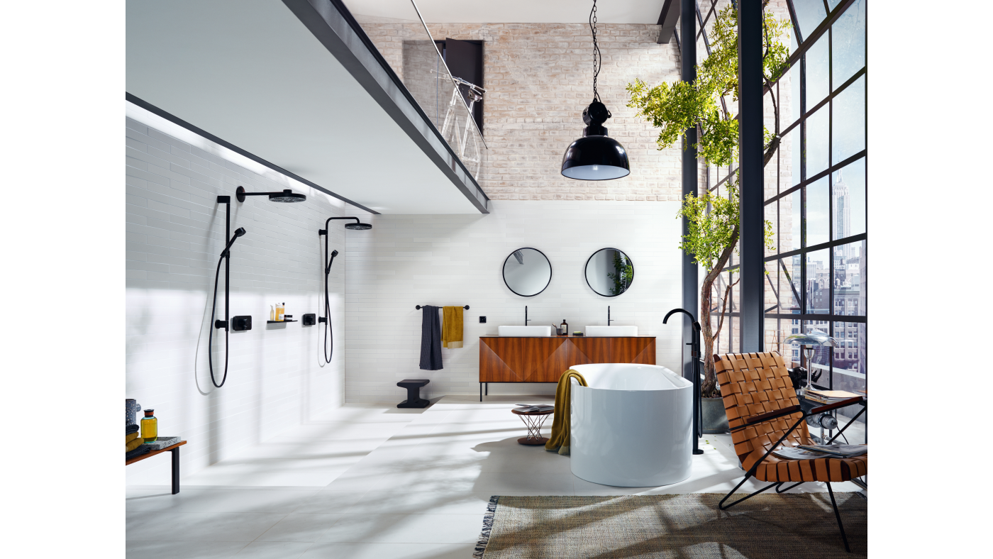 - Metaal: RVS, zwart staal of chroom in kranen, douchekoppen en handdoekrekken.