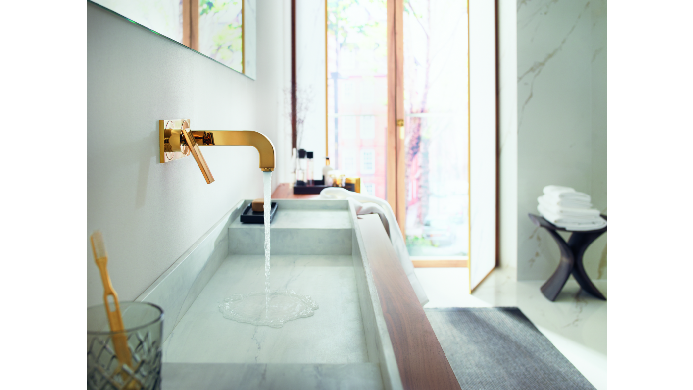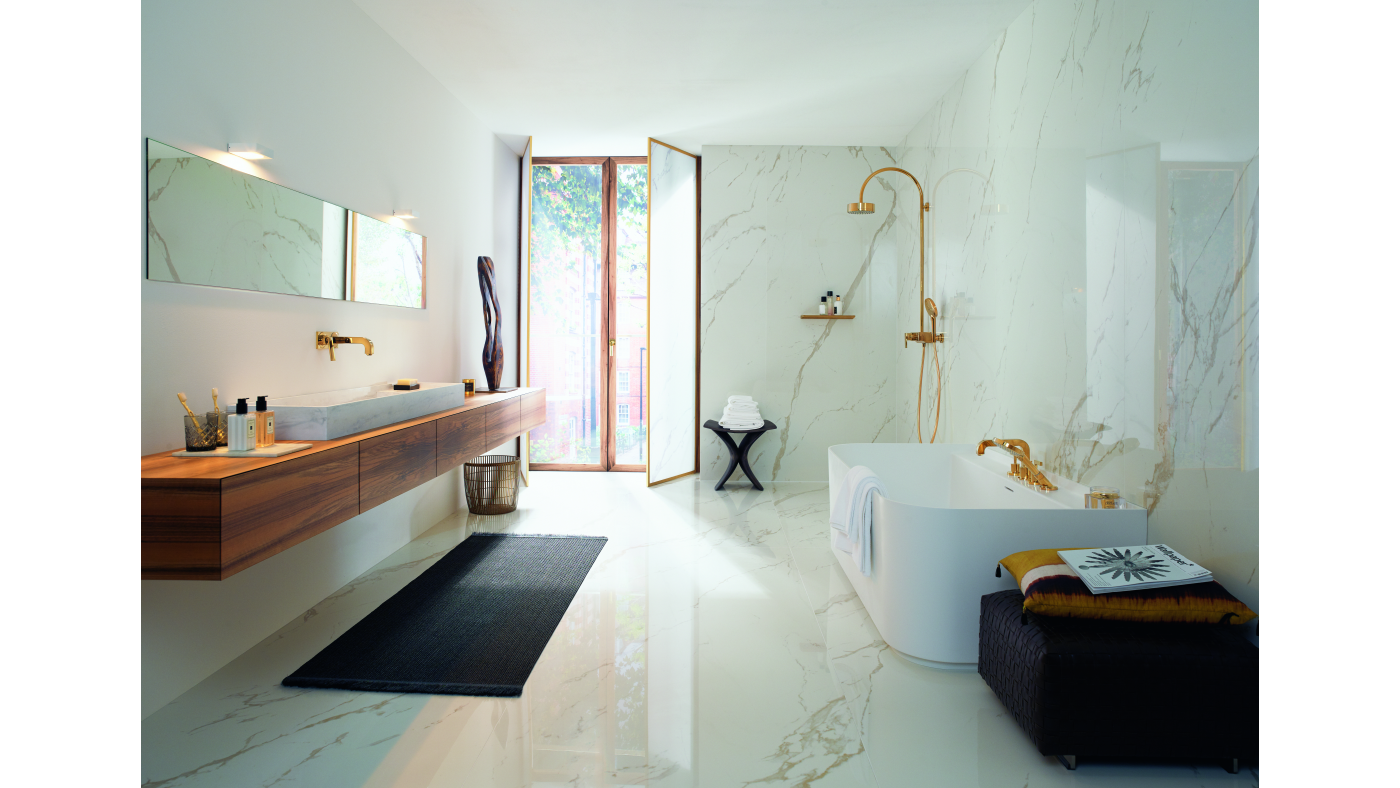 - Ingebouwde elementen: Wandtoiletten en ingebouwde kranen zorgen voor een gestroomlijnde uitstraling.